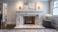 • Elegant White Marble Fireplace In A Luxurious Living Room Interior With Gray Walls And Warm Lighting. Modern Home Design Decor Features A Classic