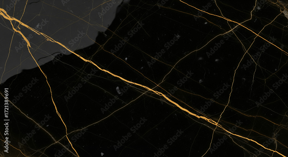 Marmur - Close-up view of a black marble surface with golden veins and intricate patterns. #1721389691