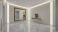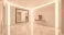 • Luxurious modern hallway with a large ornate mirror and marble flooring, illuminated by ambient lighting.