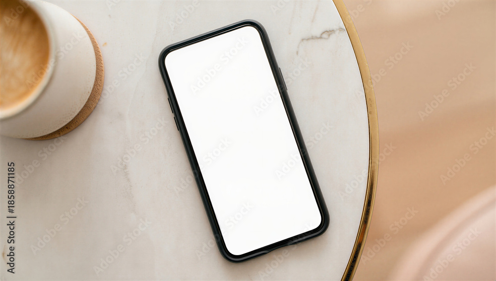Marmur - Top view blank smart phone mockup coffee cup marble table #1858871185