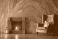 Marmur - Teal armchair by a fireplace with a marbled wall background. #1887653074
