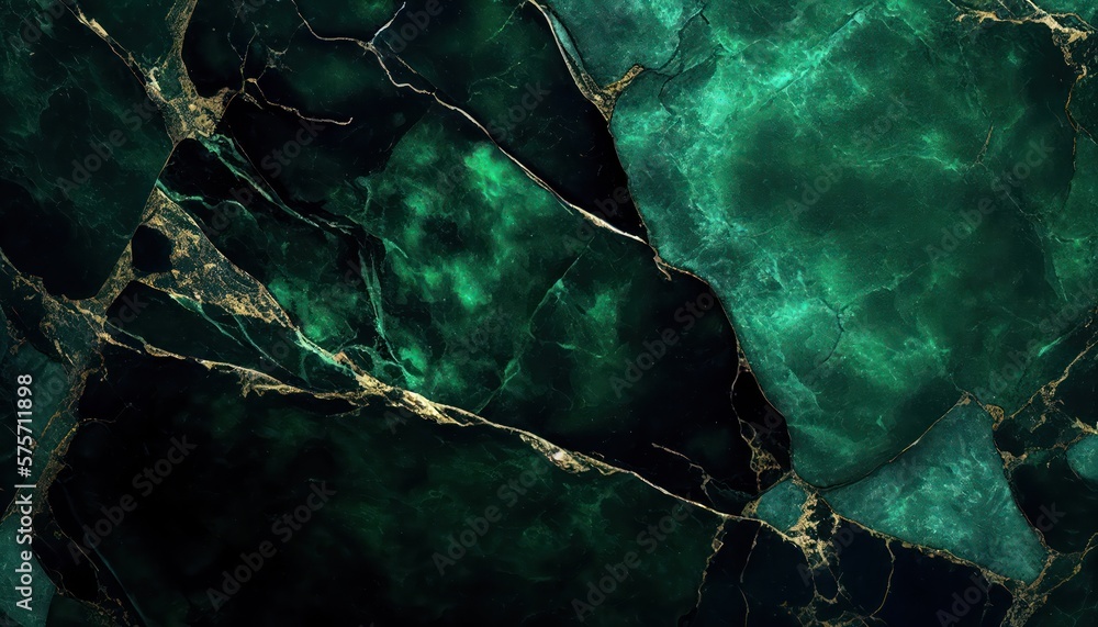 Marmur - Abstract green marble texture with gold splashes, emerald luxury background #575711898