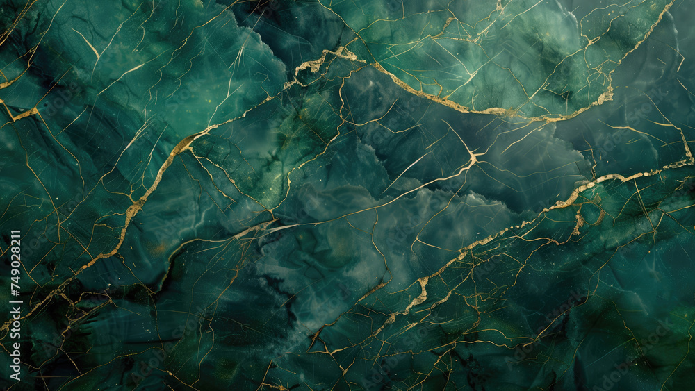 Marmur - Green marble with golden veins texture background. Generative Ai #749028211