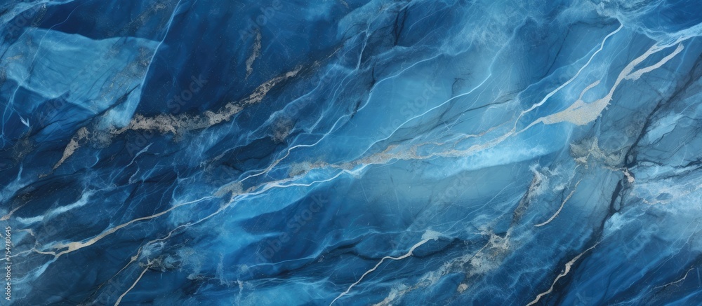 Marmur - Detailed view of a blue marble surface, showcasing intricate patterns and textures found in the... #754780645
