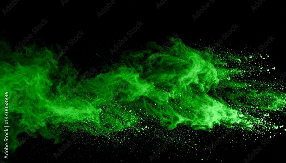 Czarny - Eksplozja zielonego proszku na czarnym tle #1440058936