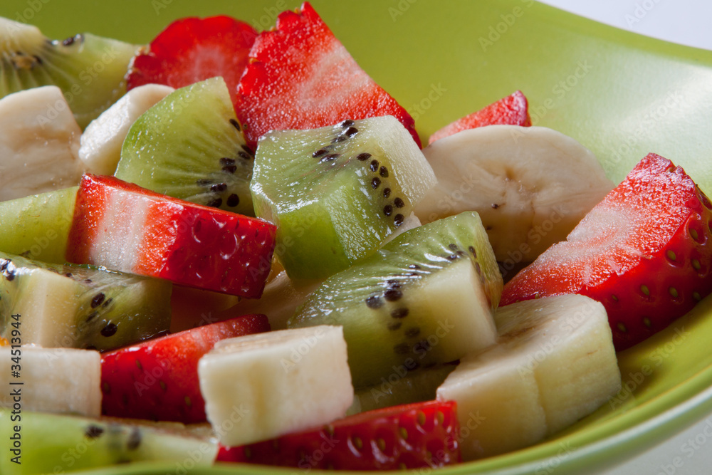 Obraz Jedzenie i Napoje - sałatkaowocowa na zielonym połmisku #34513944
