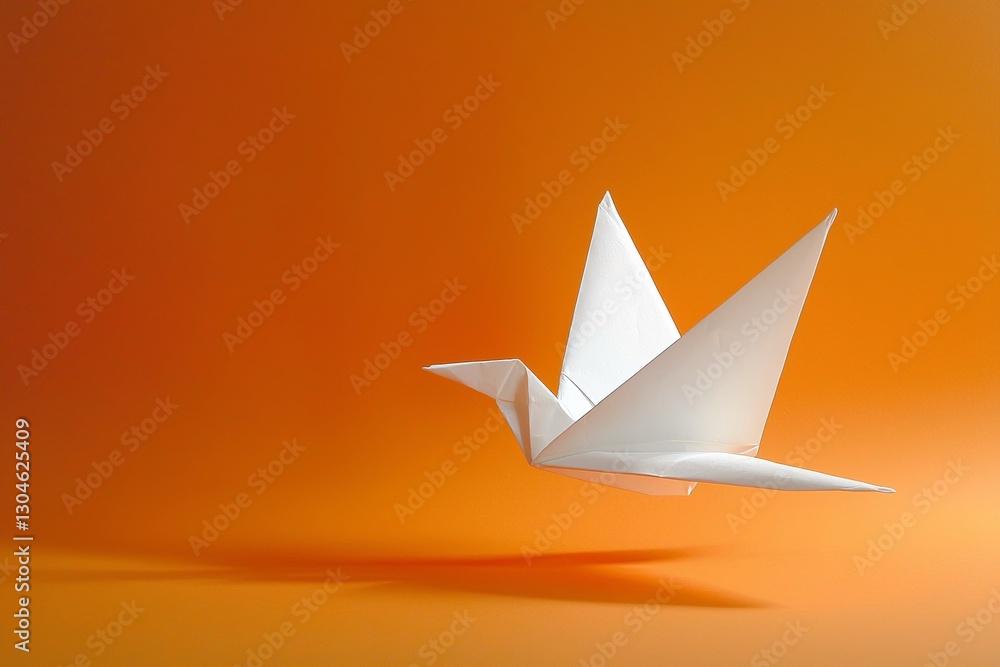 Plakat Origami - Uccello di origami in volo su uno sfondo arancione, simbolo di libertà e creatività. #1304625409