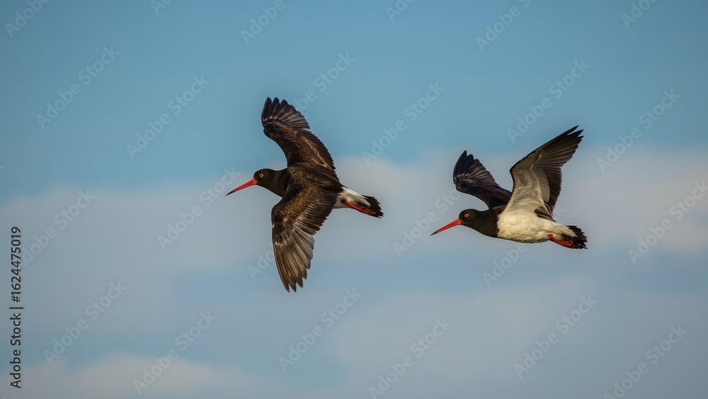 • Wildlife Scene: Oystercatchers in Flight with Vivid Plumage
