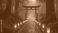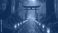 Dekory szklane - Red torii gate and glowing lanterns line a wet stone path in a foggy Japanese forest at night.... #1793620861