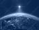 • Nightly Earth planet. Star of Jesus or Christmas Star. Planet Earth in outer space. Star of Bethlehem. The star shines over the manger of Christmas of Jesus Christ. Europe at night.