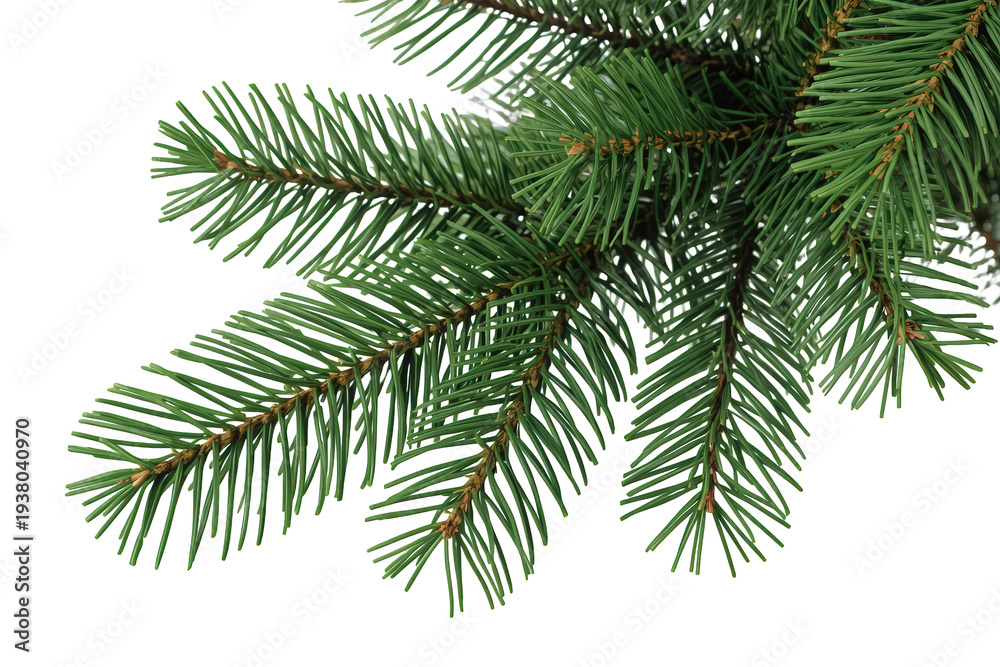 • Green fir tree branch with needles providing a natural christmas and winter holiday backdrop on transparent background