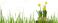 • floral easter decoration in green grass meadow isolated on transparent background, grass blades around a nest with daffodil flowers and easter eggs, garden scene in spring