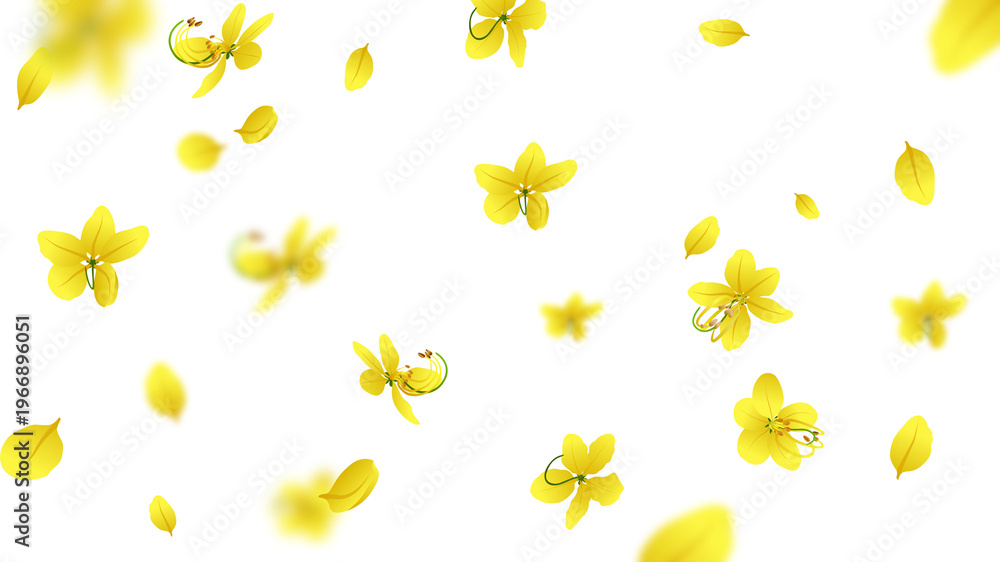 • Falling Kanikkonna, Golden Shower or Cassia Fistula flowers and petals on transparent background, Kerala Vishu festival illustration