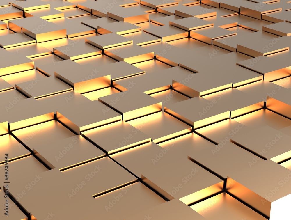 Panel Szklany Abstrakcja - Abstrakcyjne tło - złote błyszczące kostki #36745834