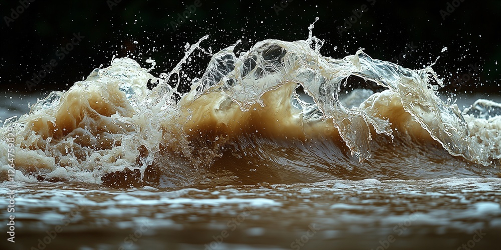 • Dynamiczna fala rozpryskująca się z pianką w ruchu na ciemnym tle