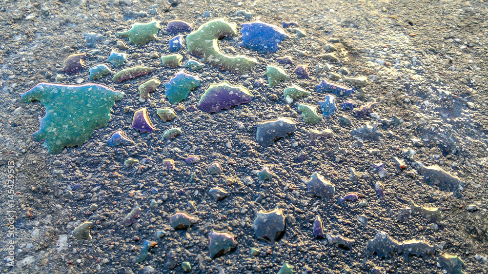 Panel Szklany Plamy - Plama oleju pokryta kroplami wody #145429513