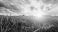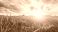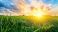 • Zielona trawa pokrywa wzgórza, które spływają w dół w kierunku zachodzącego słońca. Z nieba spływają złote i pomarańczowe promienie, które rozświetlają krajobraz.