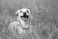 Panel Szklany Trawa - Mału piesek na trawie. Szczęśliwy kundelek #370545359