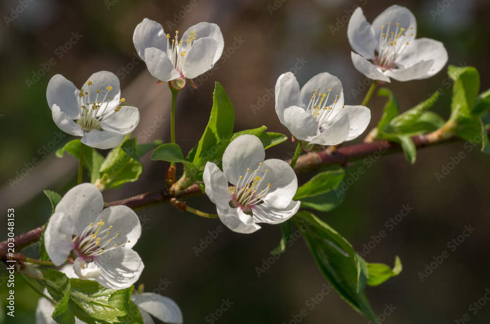 Panel Szklany Kwiat - Blooming wild plum tree in daylight. #203048153