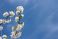 • Gałąź wiśni pokryta białymi kwiatami na tle błękitnego nieba