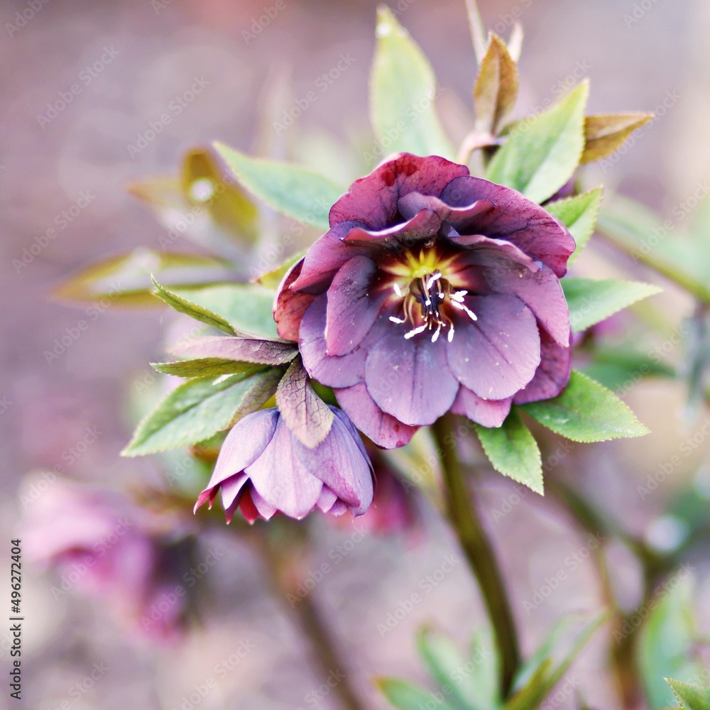 Panel Szklany Kwiat - Ciemiernik, fioletowy kwiat #496272404