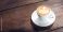 • Close up hot cappuccino white coffee cup with heart shape latte art on dark brown old wood table at cafe,food and drink concept.