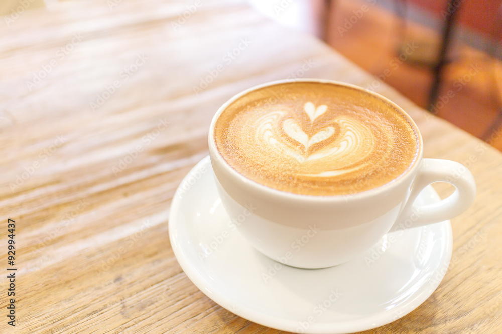 Panel Szklany Kawa - Cup of coffee latte art on wood table #92994437
