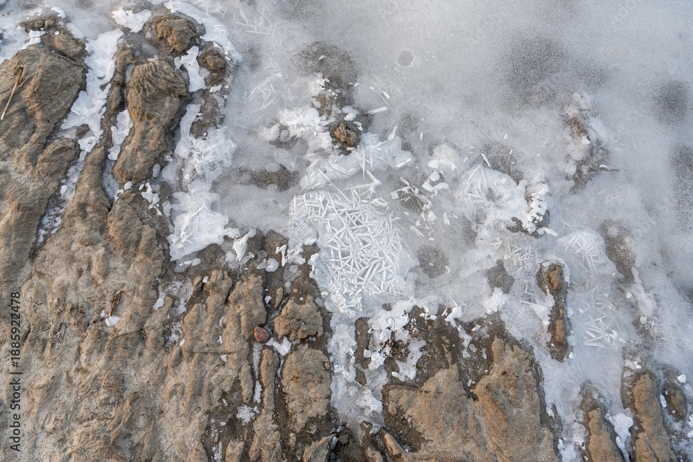 Panel Szklany Kamień - Zimowa plaża na południowym Bałtykiem, na środkowym wybrzeżu Polski. #1885922478