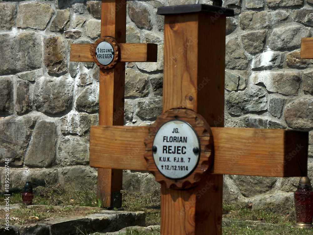 • Cmentarz z pierwszej wojny światowej, żołnierz, krzyż, śmieć, nagrobek, poległy, upamiętnienie