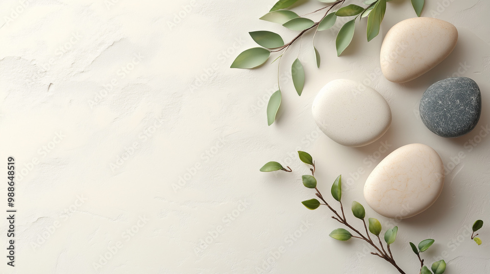 Panel Szklany Kamień - Stonowane, minimalistyczne tło z elementami natury, takimi jak kamienie i gałęzie, tworzy... #988648519