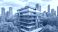 • Współczesny budynek mieszkalny z dużymi oknami i licznymi balkonami, wkomponowany w tętniący życiem krajobraz nowoczesnych wieżowców.