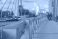 • Bariera oddzielająca jezdnię od chodnika na nowym moście w mieście. Jesienne wczesne popołudnie na moście wiszącym w mieście (Ostrowiec Św.).