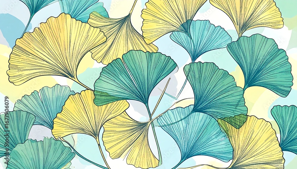 Fiolet - Abstract pattern of colorful Ginkgo leaves #1677906079