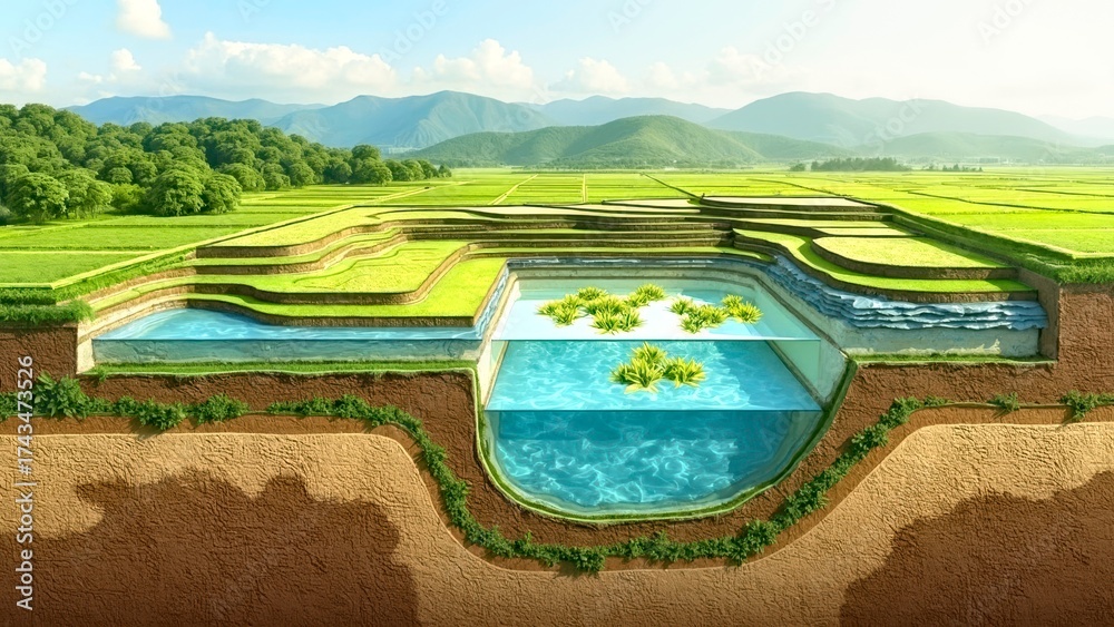 Fiolet - Terraced landscape patterns between mountains and rivers #1743473526