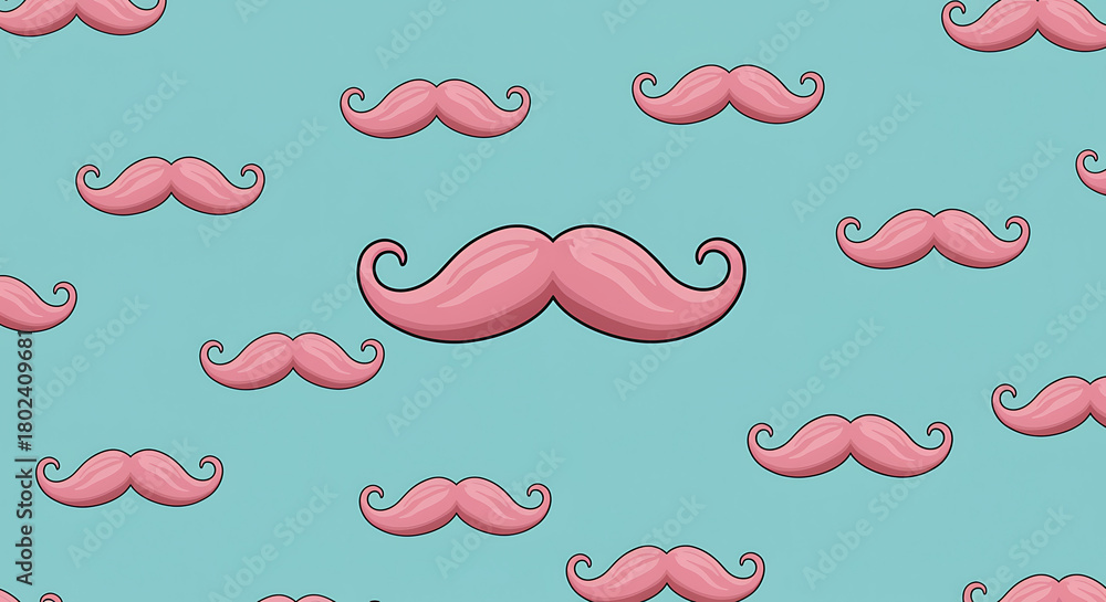 • Pink mustache pattern on a light blue background barber shop illustration