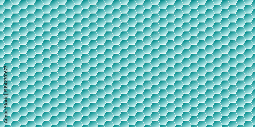 Fiolet - Seamless turquoise hexagon honeycomb pattern with soft gradient geometric background #1842701677