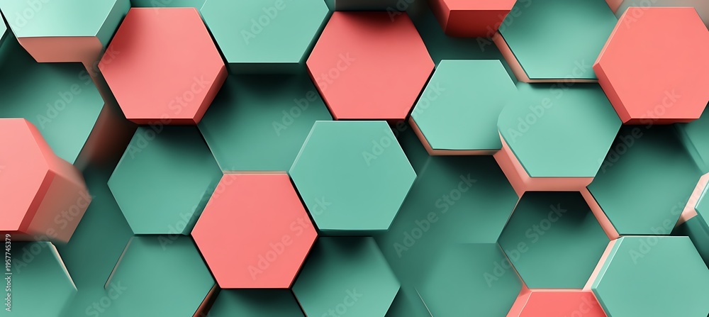 • A visually appealing 3D rendering featuring red and green hexagons arranged in a seamless pattern