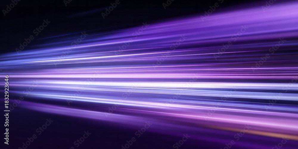 • Intense beams of purple and blue light streak across a dark background suggesting rapid motion