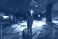 Chabrowy - A child stands on rock ledges in an illuminated aquarium exhibit in Seville, Spain, gazing at a... #1943094809