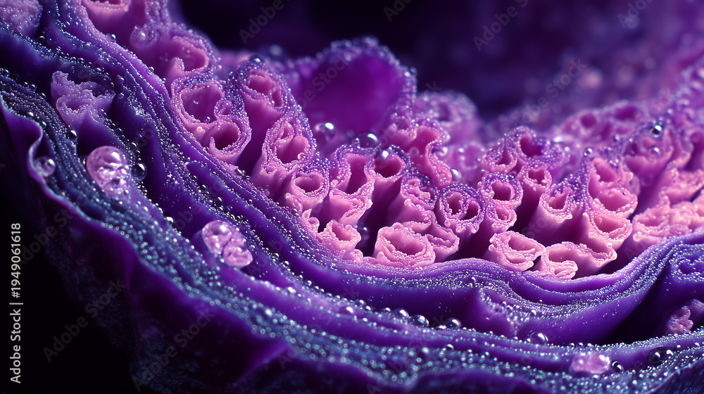 • 渦模様の紫キャベツ断面クローズアップ / Macro Close-up of Purple Cabbage Pattern
