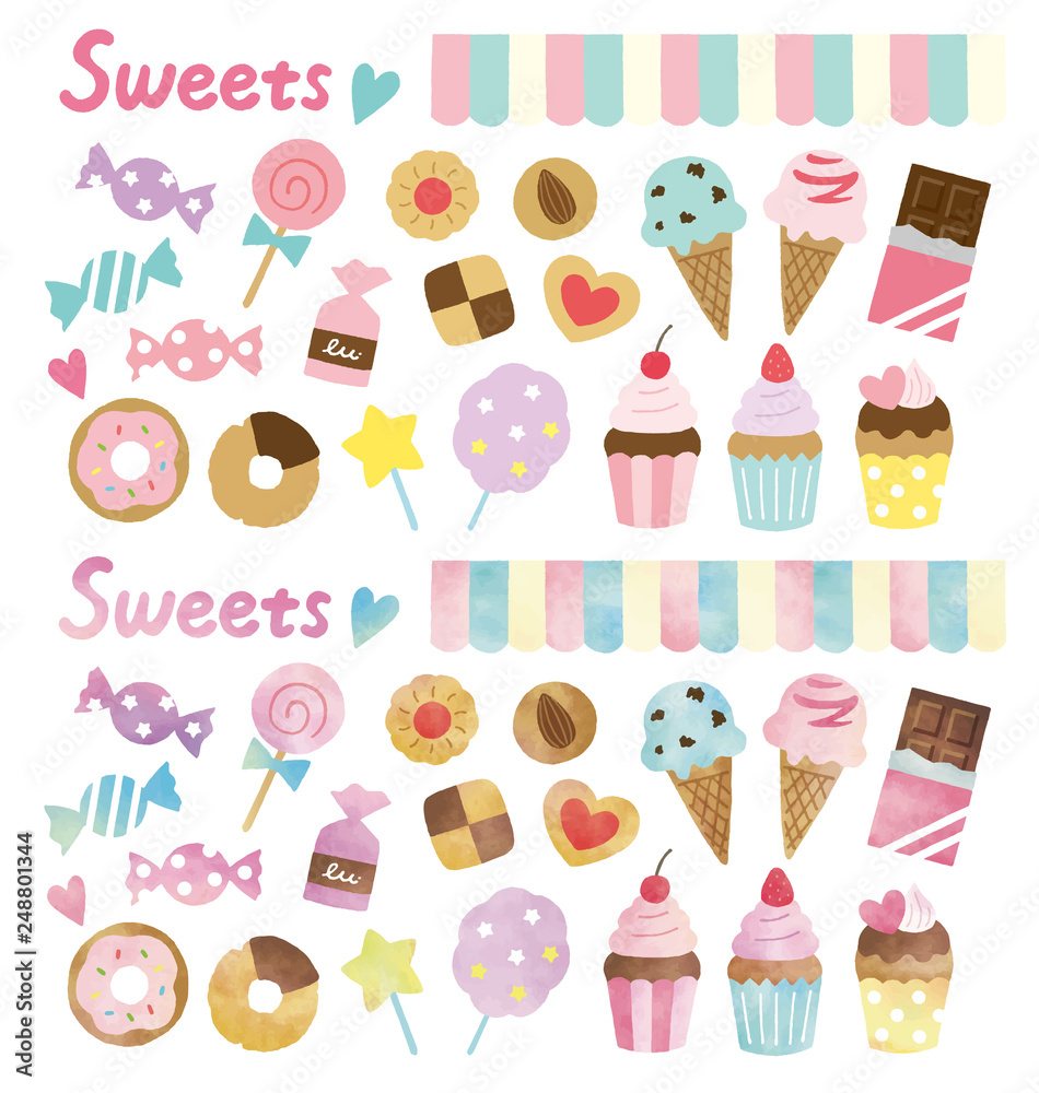 Słodycze - お菓子水彩とベタ塗り #248801344