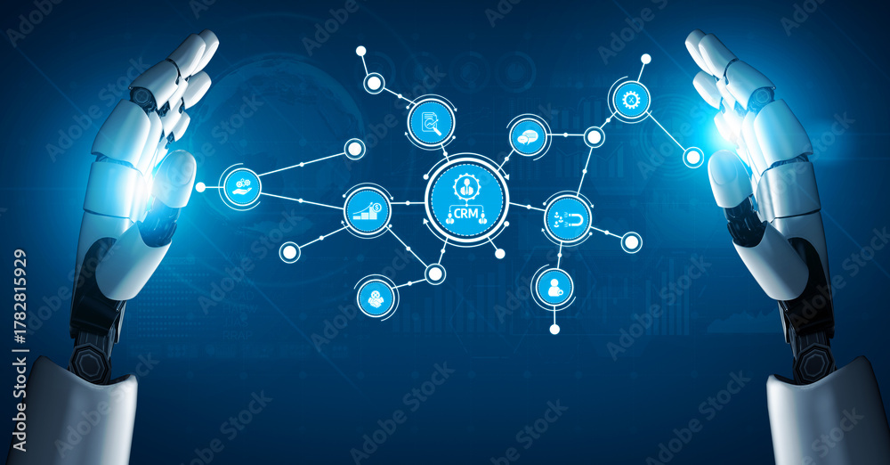 Rośliny - Robotic hands interact with a digital network, symbolizing advancements in technology and... #1782815929