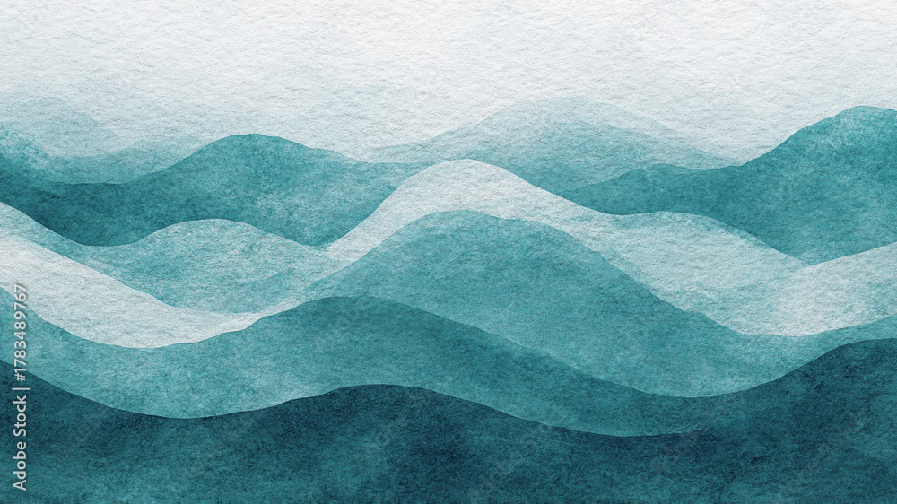 • Blue azure turquoise abstract watercolor background for textures backgrounds and web banners design. Abstract background blue colors. Watercolor painting with turquoise sea waves pattern gradient