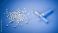 • Weight loss pills available: Two dosing pens for subcutaneous injection of antidiabetic medication or anti-obesity medication on a blue background besides a heap of GLP-1 pills.