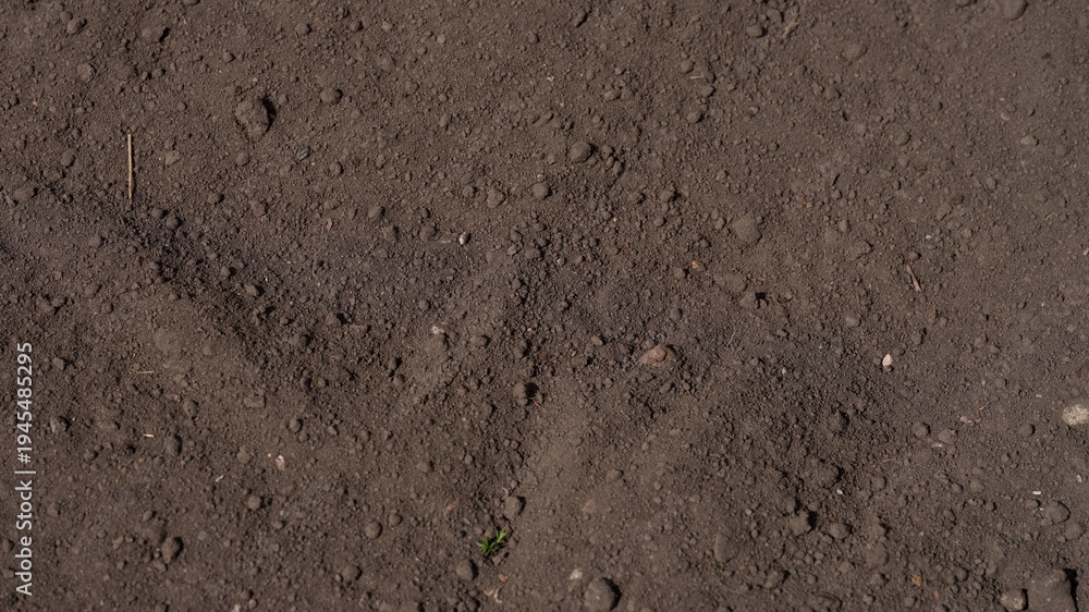 • Background of dark fertile soil texture with small organic clumps.