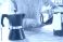 • Czajniczek do parzenia kawy.Kawiarnia , barista wybiera gatunek kawy do zaparzenia w kawiarce ciśnieniowej