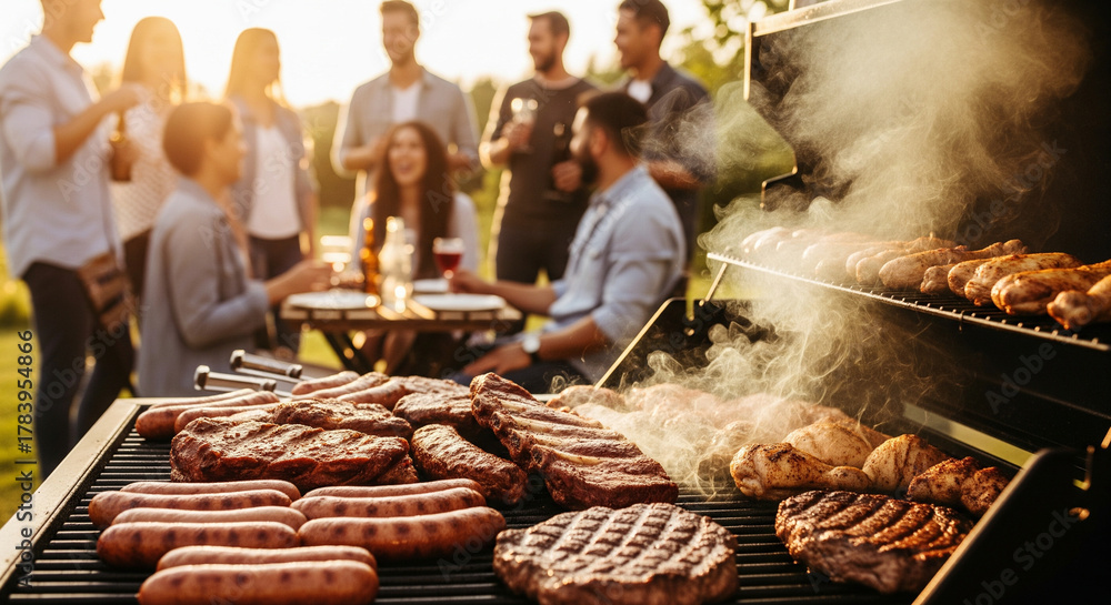 Alkohol - a group of people are having a party with grilled meat on the grill #1783954866