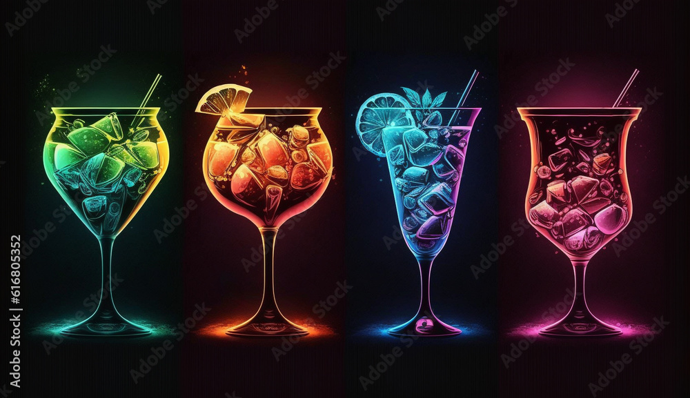 Alkohol - 4 neon Cocktails in Neonfarben und Neonlicht. Generative Ai. #616805352