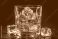 • Whiskey on Ice in einem rauchig holzigen Umfeld, Genuss und Lifestyle