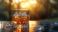 • Sonnenuntergang mit Whisky – Ein edler Tropfen in kristallklarem Glas, umspielt von schimmernden Eiswürfeln und dem warmen Licht der Abendsonne